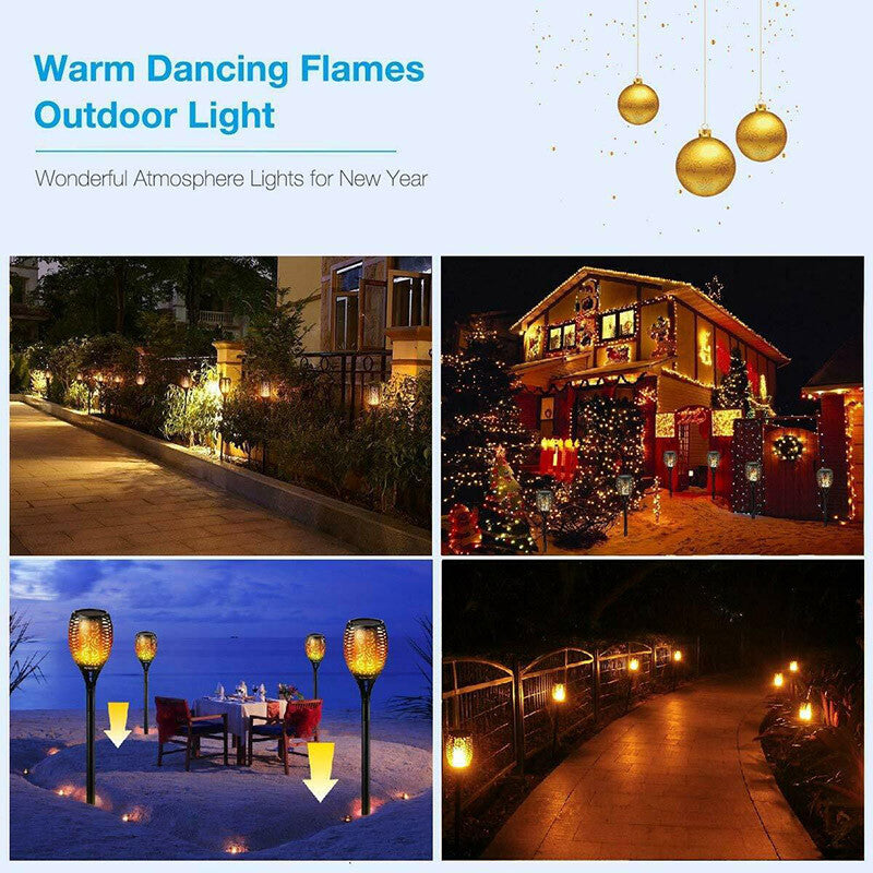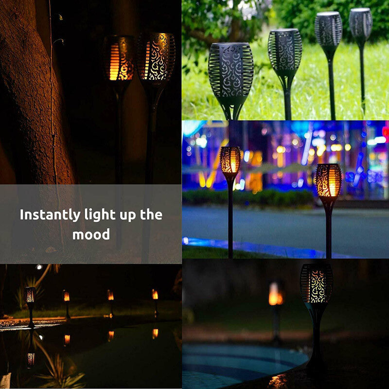 Bring the magic of flickering flames to your outdoor spaces with these Solar Flame Lights. Featuring upgraded 12 LEDs, they create a gorgeous, dancing flame effect without any real fire, making them safe and perfect for gardens, pathways, patios, and outdoor parties. Enjoy a warm, soft glow that enhances the atmosphere of any event, from weddings and BBQs to Christmas and Halloween celebrations.