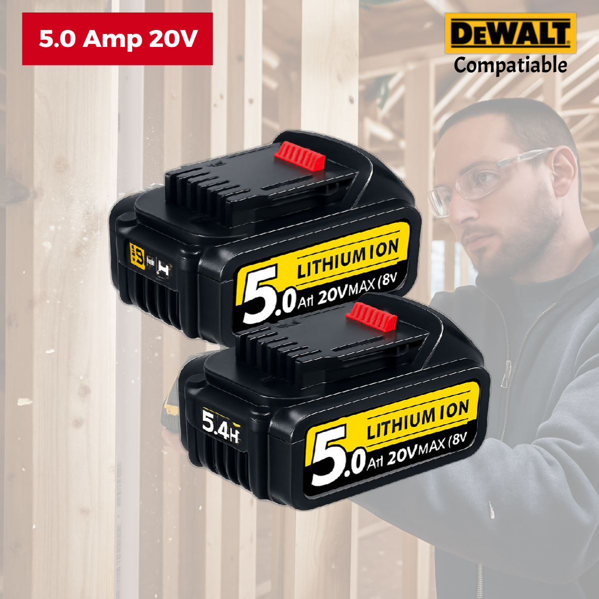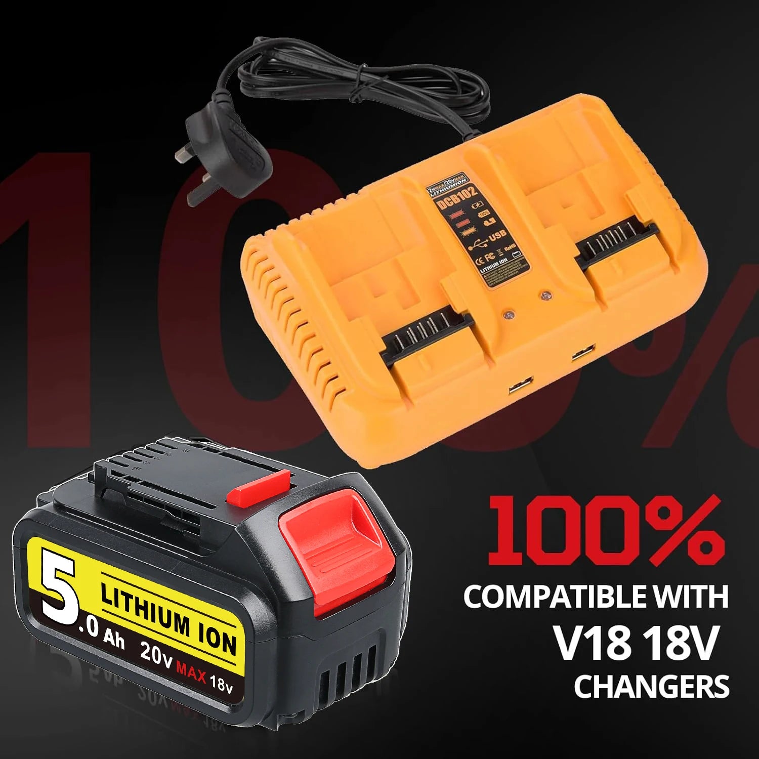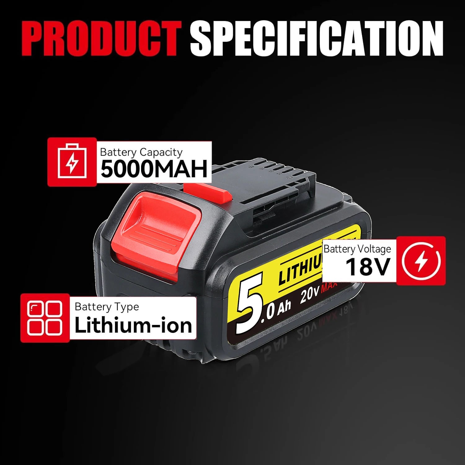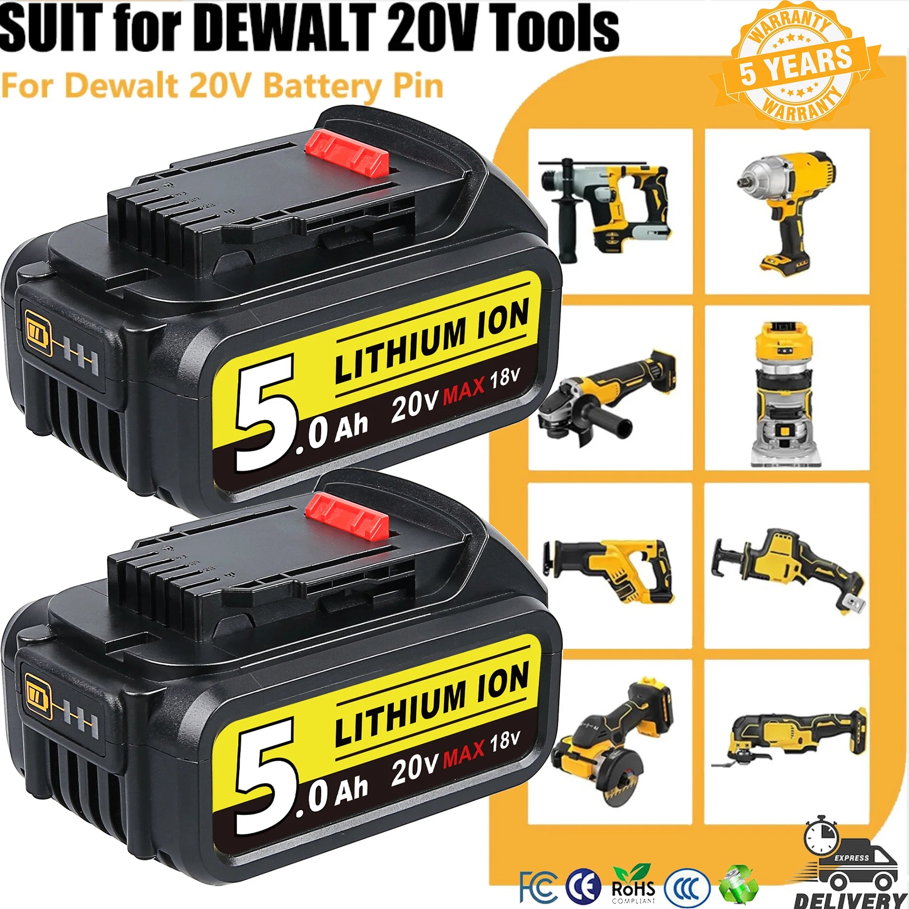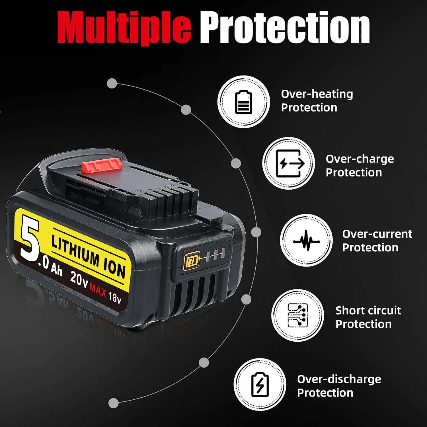 5.0Ah High Capacity Replacement Batteries for DeWalt 20V Battery Pin DCB203 DCB204 DCB205 DCB206 for 20Volt Cordless Power Tools