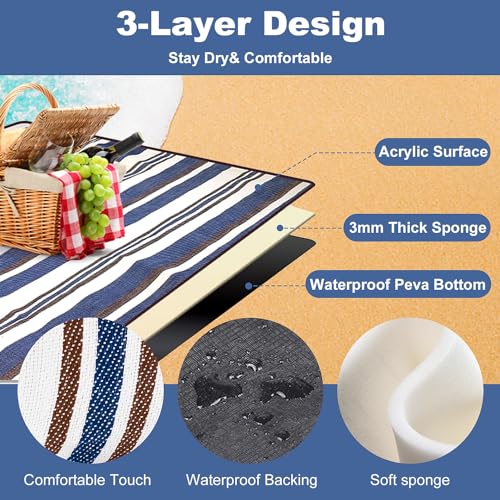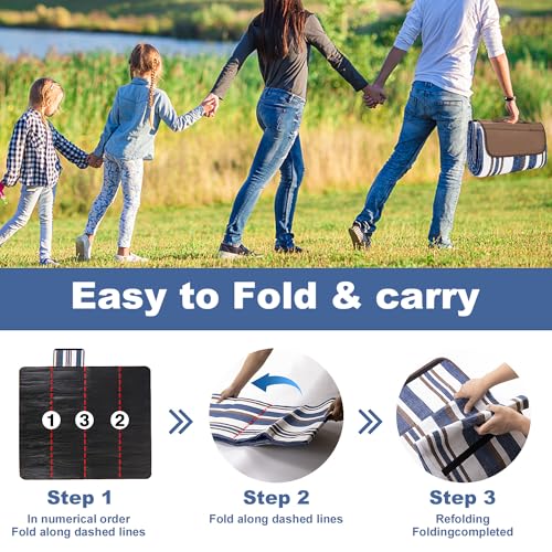 Extra Large Waterproof Picnic Blanket 2m x 1.5m – Foldable, 3-Layer Mat with Carry Bag