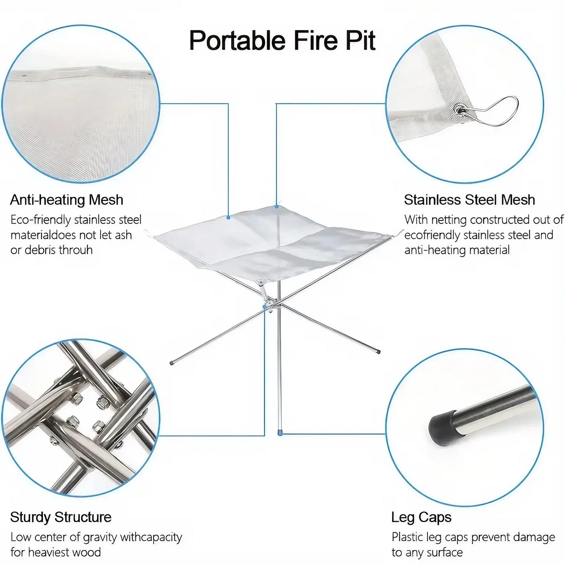 Portable Stainless Steel Firepit - Foldable Fireplace