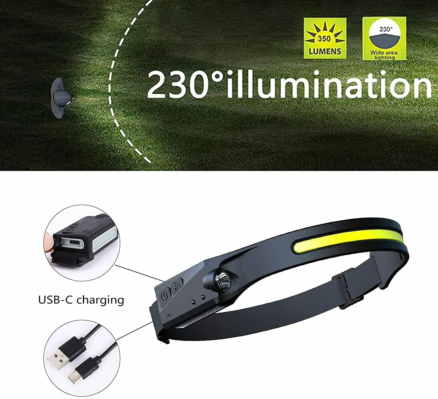USB Rechargeable Headlamp LED Motion Sensor Head Torch